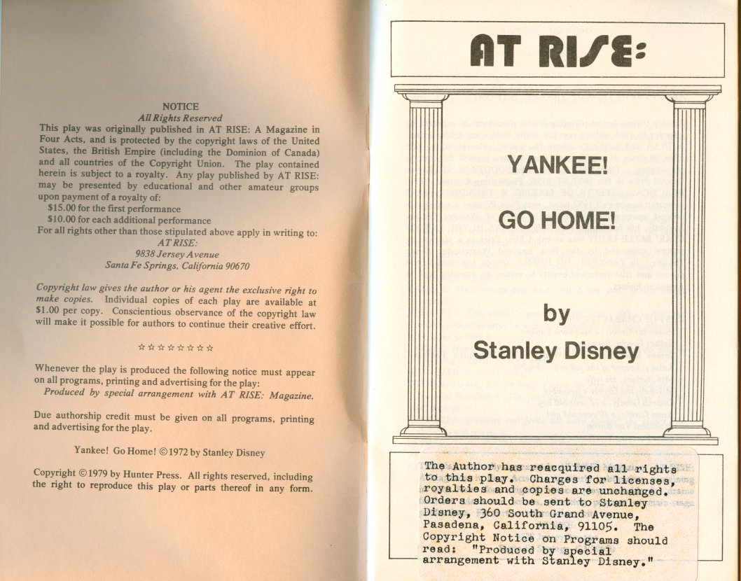 | Yankee Go Home | 1971 | 1-Act formerly "Prisoner go Home" |